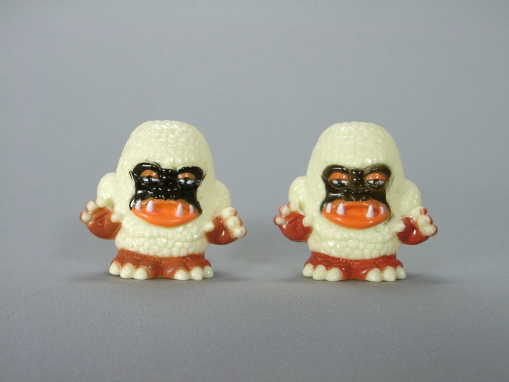 ギガス 左が「ウルトラマンフェスティバル2000」指人形セットに入っていたギガス、 右がその後単品発売されたものです。 右は顔面の黒がやや薄い感じがし、逆に手足の茶色や口元のオレンジ色が濃くなっています。(微妙ですが) 素材的には、右のほうがかなり軟らかくなっています。